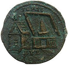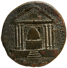 Hexastyle temple containing the sacred stone of Emesa on altar