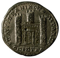 Comment- The same narrow towers as the coins above. This