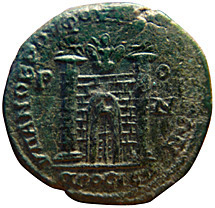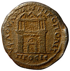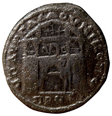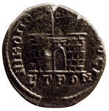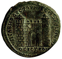 Magistrate GallusLaureate head right / City gate and