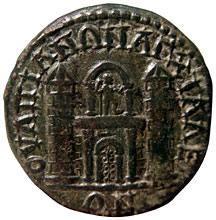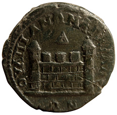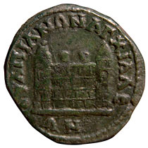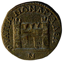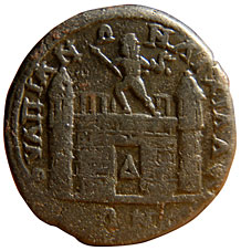 the wall to identify it with Anchialus. The tooling or smoothing on this coin makes the